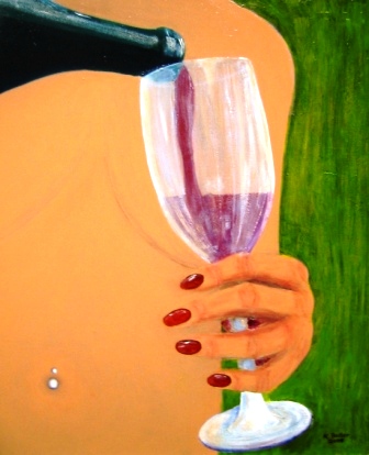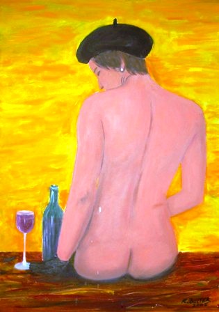 Titel: Akt mit Weinflasche Format: 50 x 70 cm Technik: Acryl auf Leinen Preis auf Anfrage